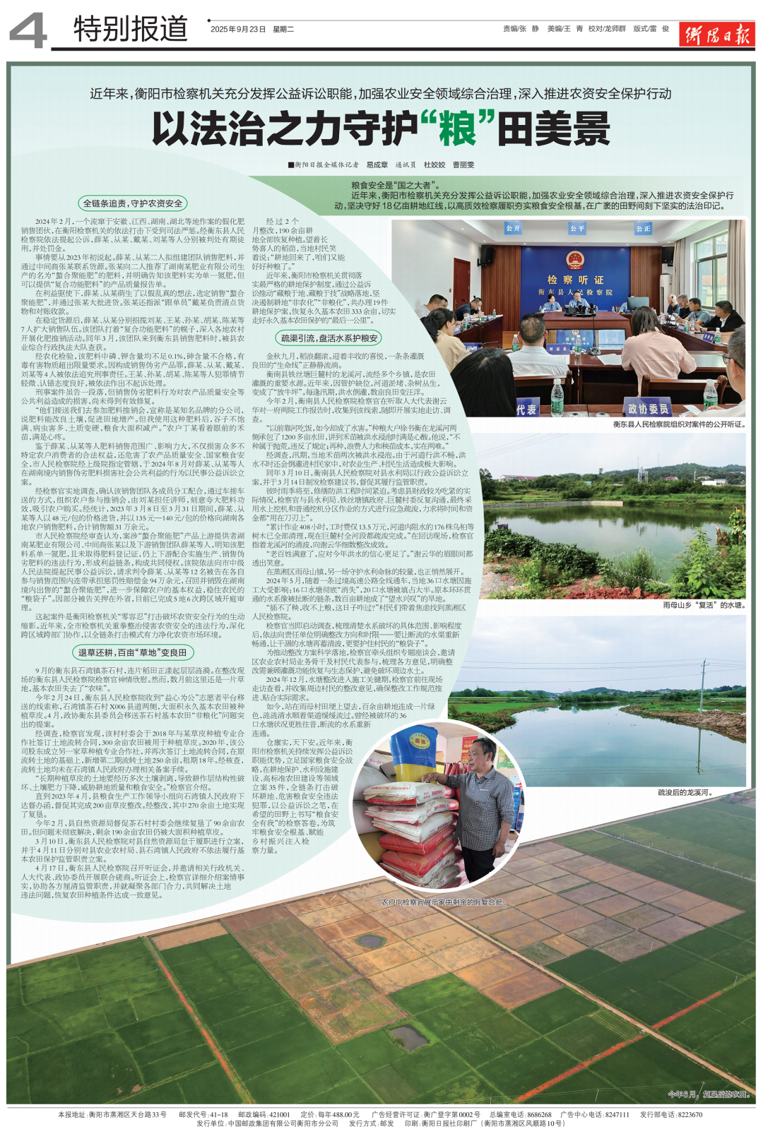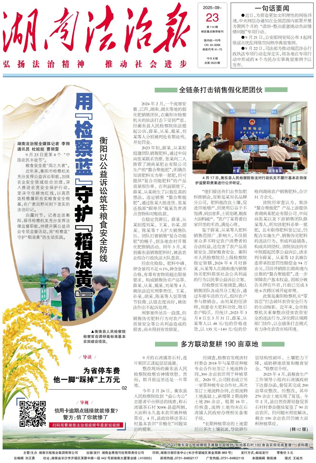 党的二十大报告强调“全方位夯实粮食安全根基”。衡阳检察的实践证明:法治不仅是惩罚犯罪的利剑,更是滋养土地的春雨。