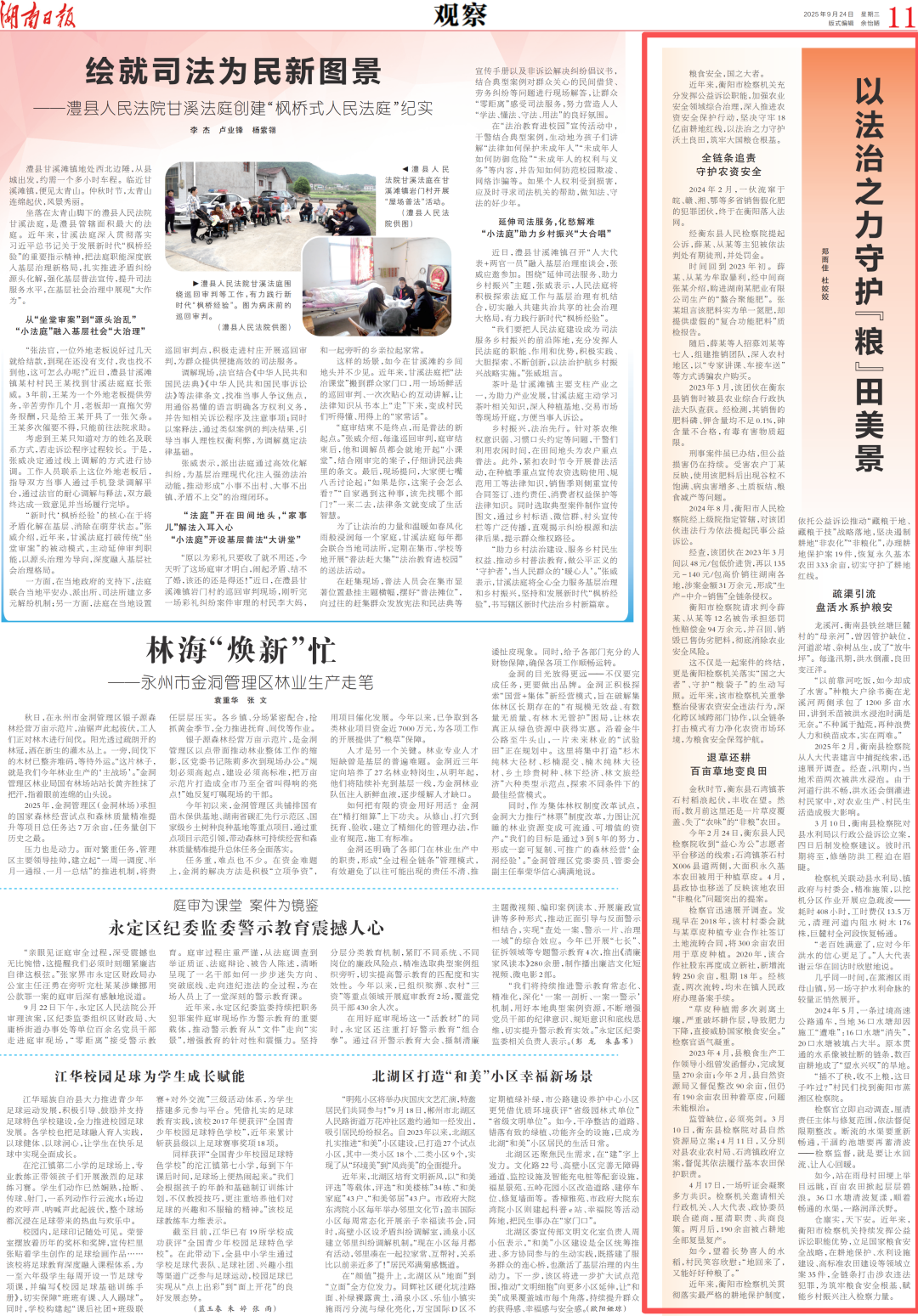 党的二十大报告强调“全方位夯实粮食安全根基”。衡阳检察的实践证明:法治不仅是惩罚犯罪的利剑,更是滋养土地的春雨。
