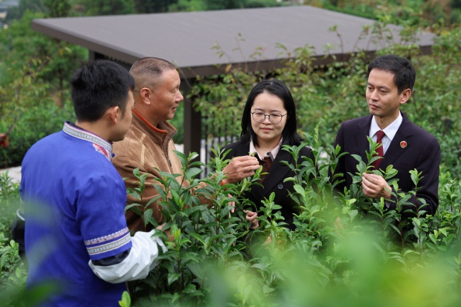 10月28日,浙江省景宁畲族自治县检察院检察官走访景宁惠明茶核心产区,向茶农了解茶叶近况及古茶树生长与管护情况。