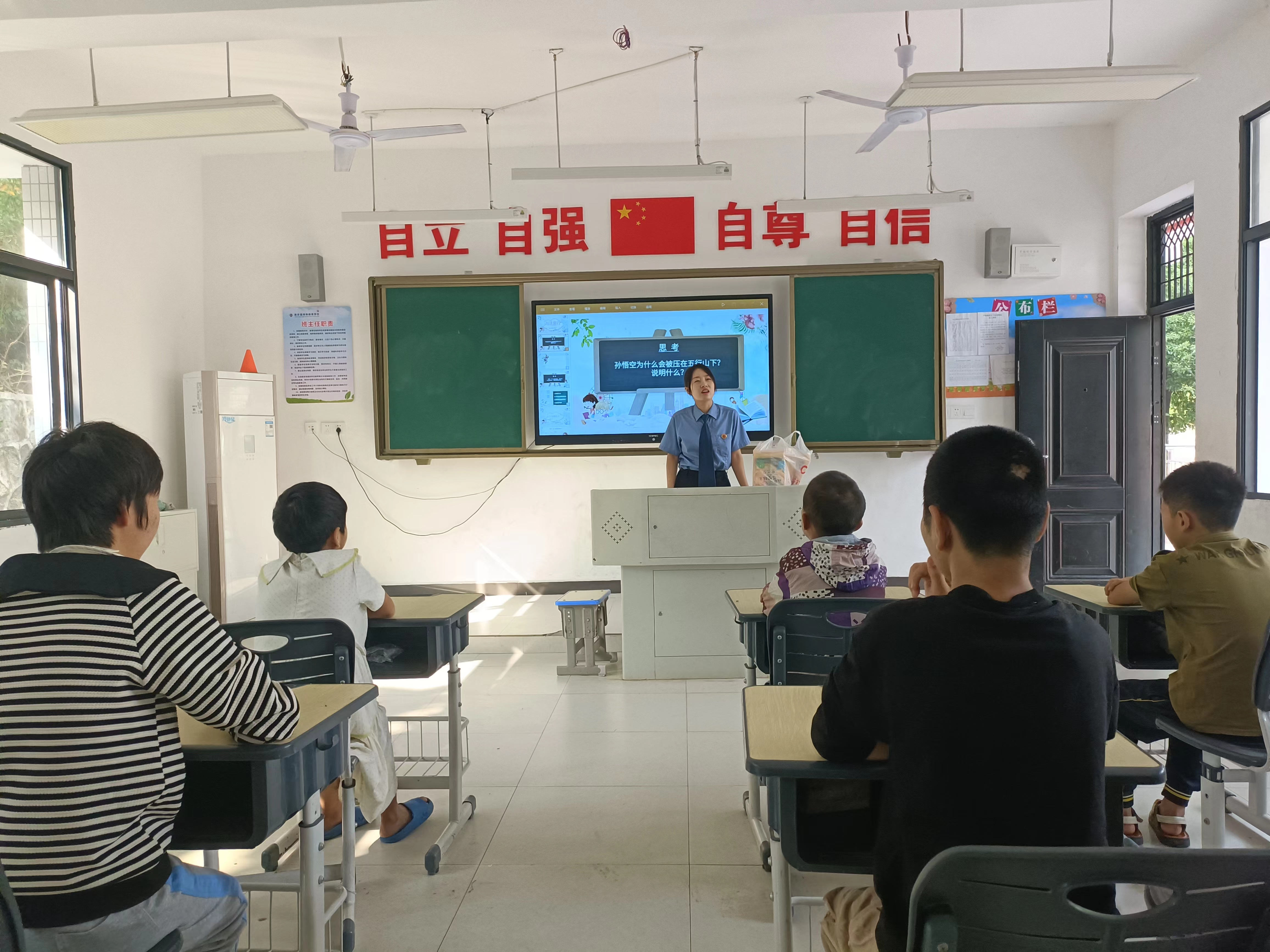 课堂上,未成年人检察部门检察官张乐针对小学生心理尚未成熟、思想单纯、容易冲动等特点,结合真实案例,用通俗易懂的语言向学生们讲解《未成年人保护法》《预防未成年人犯罪法》等法律法规,教育学生们要主动学习法律、敬畏法律、运用法律,不做暴力的欺凌者、不做沉默的受害者、不做冷漠的旁观者。