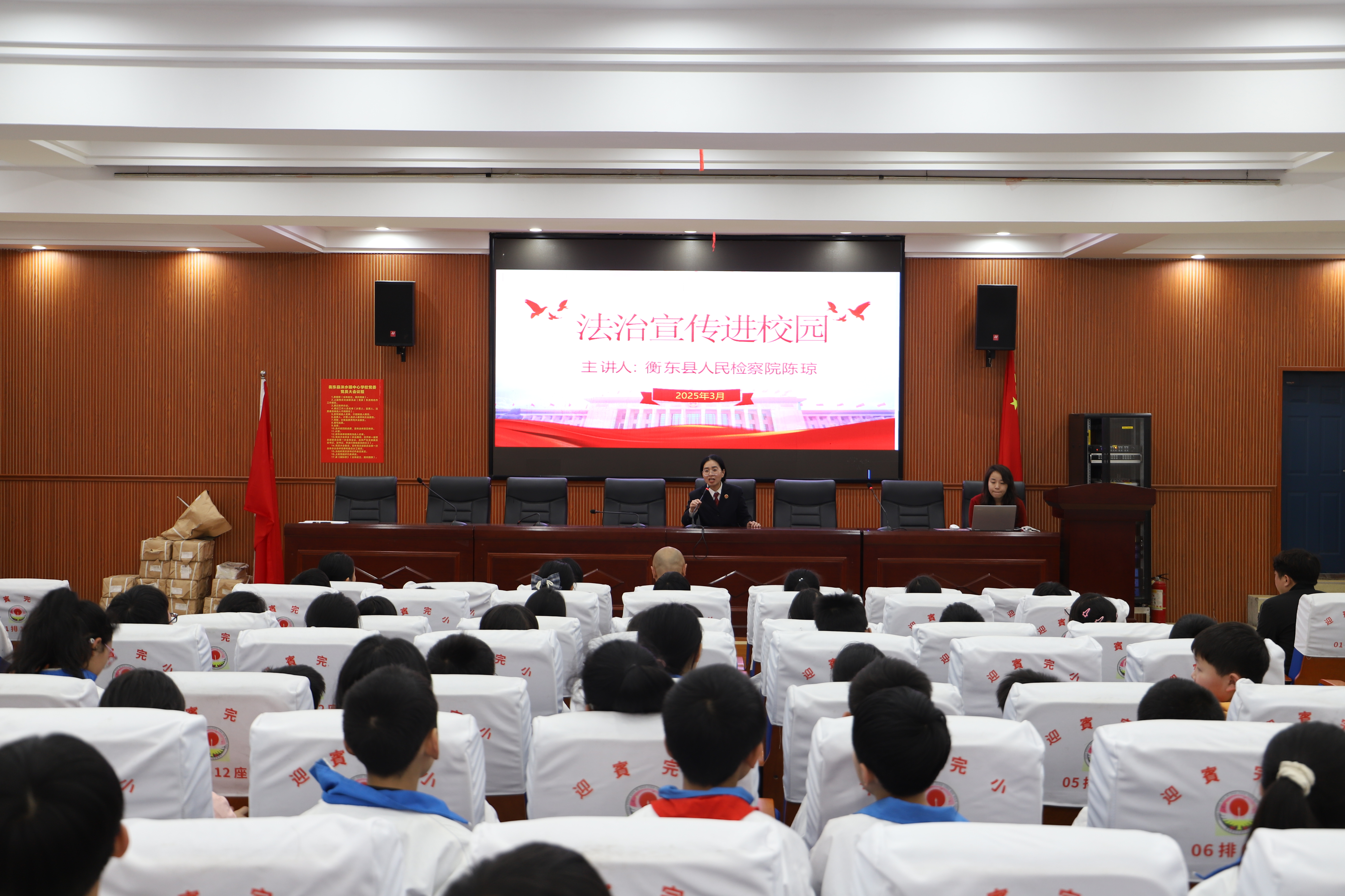 为进一步增强未成年人法治意识,预防校园欺凌事件发生,提高未成年人对于违法犯罪行为的警惕意识,营造安全、和谐、文明的校园环境。3月21日下午,衡东县检察院检察官陈琼走进迎宾完小,开展“法治进校园”普法宣传活动,通过专题讲座、情景模拟、互动问答等形式,为学生们送上了一堂别开生面的法治教育课。